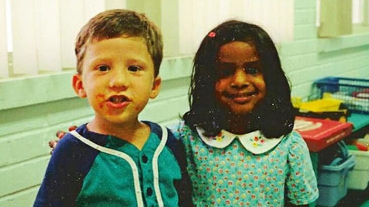 «Εγώ και η Laura γνωριστήκαμε στο νηπιαγωγείο. Θυμάμαι να είμαι μόλις 3 ετών και να λέω μπροστά σε όλη την τάξη ότι μια μέρα θα την παντρευτώ. Εκείνα τα χρόνια, η Laura μου είχε μάθει πολλά πράγματα: να κάνω κούνιες, να κάνω βαρελάκια στις πλαγιές και να τρώω τυρολιχουδιές. Θυμόμαστε κι οι δυο να παίζουμε κρυφτό, κυνηγητό και να παρακούμε τους γονείς – να κοιμόμαστε πολύ μετά την ώρα που μας είχαν πει. Η Laura με γοήτευε πολύ τότε και ακόμη με γοητεύει. Μετά, πήγαμε δημοτικό και χαθήκαμε. Τα 7 επόμενα χρόνια, ο μόνος τρόπος για να δει ο ένας το πρόσωπο του άλλου, ήταν μέσω χριστουγεννιάτικων καρτών που έστελνε η μία οικογένεια στην άλλη».
