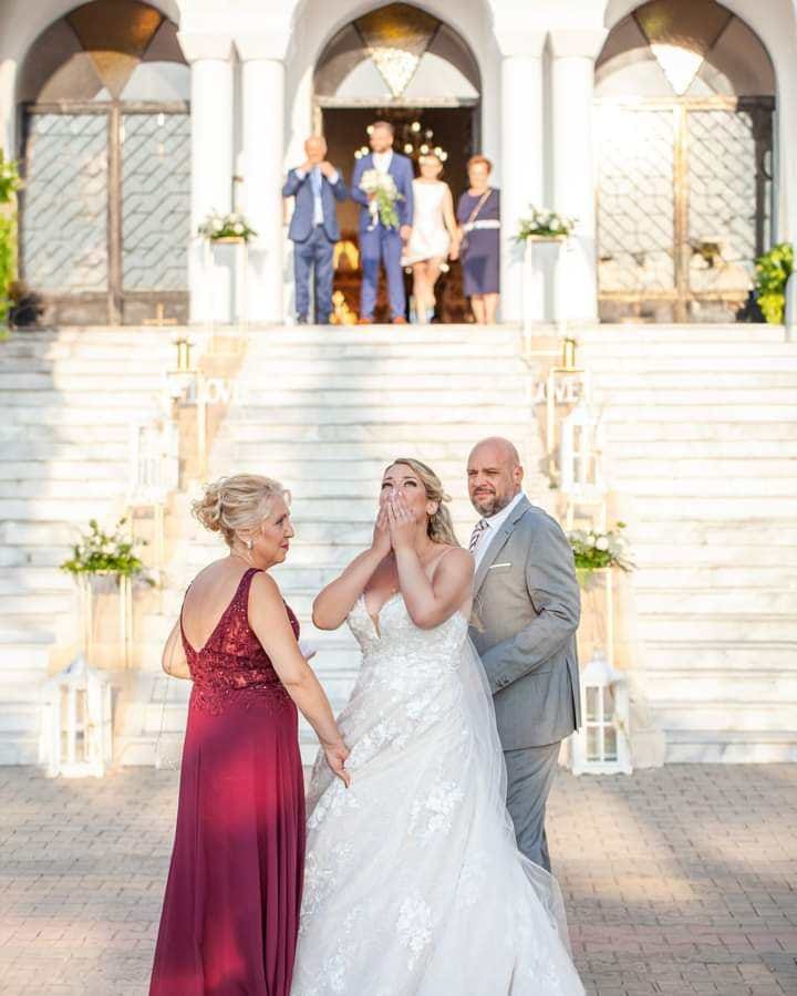 Δέος και συγκίνηση στον γάμο του Άγγελου και της Χριστίνας, όταν η νύφη κοντοστάθηκε να χαιρετήσει τον πατέρα της που την κοιτούσε από ψηλά.