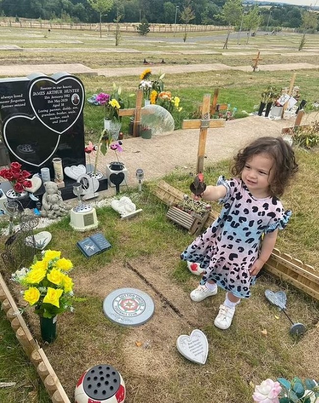 Η μικρούλα Χάρπερ-Μέι στον τάφο του μπαμπά της.