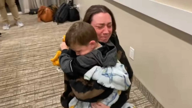 Η συγκίνηση της μητέρας να αγκαλιάζει ξανά τον 3χρονο γιο της