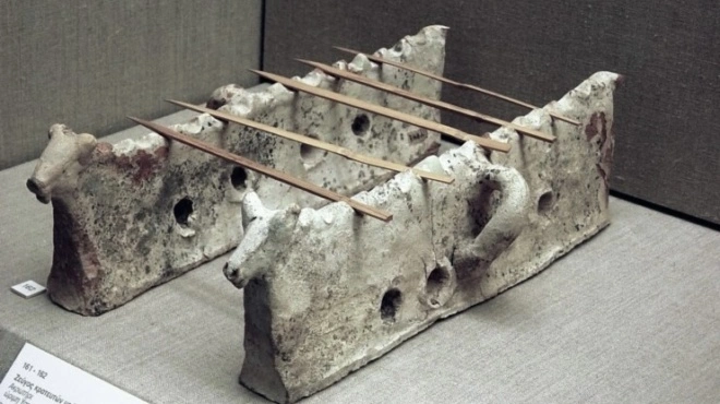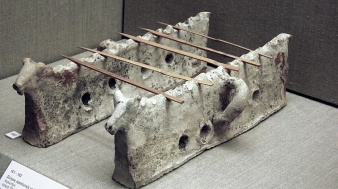 .«Οι καρποί αυτοί ήταν προϊόντα καλλιεργειών -γι’ αυτό και έχουμε γνώσεις για τις καλλιέργειες εκείνης της εποχής. Βρήκαμε φάβα, φακές, κριθάρι-, σε ένα μάλιστα πιθάρι γεμάτο τέφρα βρήκαμε αποτυπώματα αμύγδαλων. Εντοπίσαμε επίσης πολλά κουκούτσια ελιών θρυμματισμένα, άρα μιλάμε για παραγωγή λαδιού. Βρήκαμε και ένα πιθάρι με σαλιγκάρια, αν και τα συγκεκριμένα ήταν εισαγωγής! Επρόκειτο για κρητικά σαλιγκάρια».Βρήκαν όμως και πάρα πολλούς σπόρους από σύκα: «Αυτή ήταν η ζάχαρή τους. Και βέβαια, το σύκο ήταν το καθαρτικό τους!» (χαμογελάει).Βρήκατε και υπολείμματα ψαριού;«Μέσα σε πιθάρια εντοπίσαμε αποξηραμένα ψάρια και κόκαλα ψαριών. Μάλιστα, καθώς σκάβαμε σε βαθιά στρώματα για τα θεμέλια των στύλων του στεγάστρου, βρήκαμε γάρον (garum κατά τους Ρωμαίους).Πρόκειται για μια πάστα από ψάρι, λιχουδιά για τους Ρωμαίους. Η αριστοκρατία απολάμβανε το καλύτερο μέρος του ψαριού, ενώ η «πλέμπα» και ο στρατός χρησιμοποιούσαν τα κεφάλια, τις ουρές, τα πτερύγια. Βρήκαμε ένα τέτοιο πιθαράκι και επρόκειτο για σημαντική ανακάλυψη μιας και απέδειξε ότι 1.500 χρόνια πριν τους Ρωμαίους, το έφτιαχναν στη Θήρα. Είναι βέβαια χαρακτηριστικό ενός λαού που ζει με και από τη θάλασσα…»Η πιο σπάνια, όμως, λιχουδιά ήταν ο γάρος, μια εκλεκτή σάλτσα που εξυμνούσε ο Σοφοκλής, ο Πλάτωνας και ο Πλίνιος από εντόσθια ψαριών και μικρά ψάρια (σαρδέλες, αθερίνες) που παστώνονταν σε χοντρό αλάτι και απλώνονταν στον ήλιο 2-3 μήνες. Το παχύρευστο υγρό που έπαιρναν από το σούρωμα αραιωνόταν με ελαιόλαδο, κρασί ή ξύδι και αποθηκευόταν στο γαράριον για σάλτσα. Σε ορισμένες περιοχές, μάλιστα, έφτιαχναν γάρο μόνο από συκώτι κολιού ενώ η αρχική συνταγή έδωσε την ιδέα για την σάλτσα αντζούγιας των Σικελών και την γουόστερ σος (Worcestershire sauce).– Κρέας έτρωγαν; «Βρήκαμε άφθονα κόκαλα από αιγοπρόβατα, που αποτελεί βασικό είδος κτηνοτροφίας και σήμερα στα νησιά, ελάχιστα βοοειδή (στα νησιά δεν μπορούν να εκθρέψουν μεγάλα ζώα) και πολύ λίγο κυνήγι (κουνέλια, αποδημητικά πουλιά). Βρήκαμε όμως πάρα πολλά κατάλοιπα από αχινούς, αχιβάδες, κυδώνια και άλλα παρεμφερή θαλασσινά». – Εχουμε ιδέα πώς τα μαγείρευαν ολ’ αυτά;«Ξέρουμε πως είχαν τριποδικές χύτρες -που σημαίνει ότι, αν μη τι άλλο, έβραζαν. Γιαχνί πάντως δεν νομίζω πως έφτιαχναν, αφού δεν είχαν ντομάτες. Σήμερα μπορεί να μιλάμε για τα περίφημα σαντορινιά ντοματάκια, όμως οι ντομάτες μας ήρθαν από την Αμερική! Βρήκαμε επίσης ταψιά και φορητά τριποδικά φουρνάκια: φωτιά από πάνω, φωτιά από κάτω και ταψάκι με καπάκι και πορτούλα. Ενα είδος γάστρας με πόδια». Κρατευτές σουβλακιών – Τι σας εξέπληξε πιο πολύ από αυτά που ανακαλύψατε;«Οι Κρατευτές: πάνω τους έψηναν σουβλάκια. Είχαν εγκοπές αλλά και τρυπούλες για να κυκλοφορεί ο αέρας και να μην σβήνουν τα κάρβουνα. Ηταν πολύ εργονομικοί. Στην άκρη τους είχαν το σχήμα κεφαλής κριαριού. Και εξασφάλιζαν και ένα υγιεινό ψήσιμο, αφού το λίπος έπεφτε».