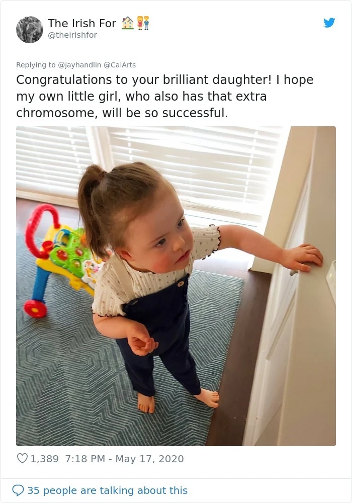 «Συγχαρητήρια στην κόρη σου και σας ευχαριστούμε και τους δύο που δείχνετε τον δρόμο, ώστε να μπορέσει και η κόρη μου (με σύνδρομο Down) να έχει το ίδιο μέλλον», έγραψε μια άλλη μητέρα ενώ μία τρίτη σημείωσε: «Σας αξίζει ο τίτλος του πιο υπερήφανου πατέρα, αφού χωρίς αγάπη και στήριξη η κόρη σας δεν θα είχε φτάσει εκεί που έφτασε».