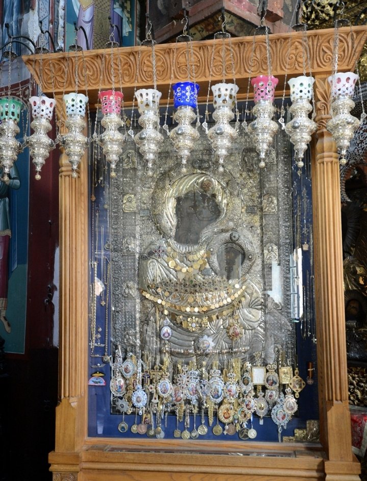 Λέγεται, μάλιστα, ότι εάν χαθεί η εικόνα από την θέση της, τότε θ’ αρχίσει η αντίστροφη μέτρηση για τη δευτέρα παρουσία του Κυρίου μας. Η Αγία αυτή εικόνα φέρει στο κάτω μέρος της σιαγόνος της Θεοτόκου μία ουλή από το μαχαίρι ενός πειρατή. Από την ουλή αυτή έρευσε αίμα, το οποίο πηγμένο διακρίνεται και σήμερα επάνω στην εικόνα.