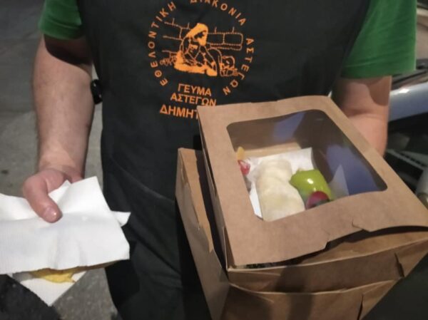Χωρίς δεύτερη σκέψη, Γιώγος και Μαρία, σε συνεργασία με την κυρία Φράγκου, έβαλαν μέσα σε κουτιά νόστιμα φαγητά και γλυκά και βγήκαν στους δρόμους μαζί με την Εθελοντική Διακονία Αστέγων κάνοντας ουσιαστικά “το τραπέζι” σε ανθρώπους που ζουν στους δρόμους της Θεσσαλονίκης και που σίγουρα δε θα είχαν την ευκαιρία να απολαύσουν ένα γεύμα ως καλεσμένοι σε γάμο…