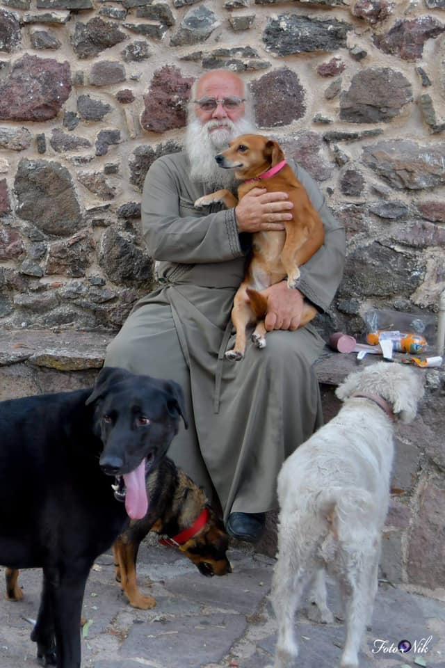 Στην εκκλησία του Αγίου Αρχαγγέλου Μανταμάδου στη Λέσβο υπάρχει ένας ιερέας που δεν μοιάζει με κανέναν άλλο. Είναι ένας άνθρωπος που έχει μεγάλη αγάπη τόσο για τους ανθρώπους όσο και για τα ζώα και για όσους την έχουν ανάγκη. Κι αυτό γιατί, δυστυχώς, πολλοί άνθρωποι στην εκκλησία είναι εχθρικοί προς τα ζώα και ιδιαίτερα προς τα αδέσποτα σκυλιά. Τα διώχνουν από το προαύλιο της εκκλησίας ή τα απομακρύνουν από τους δρόμους γύρω από την εκκλησία.