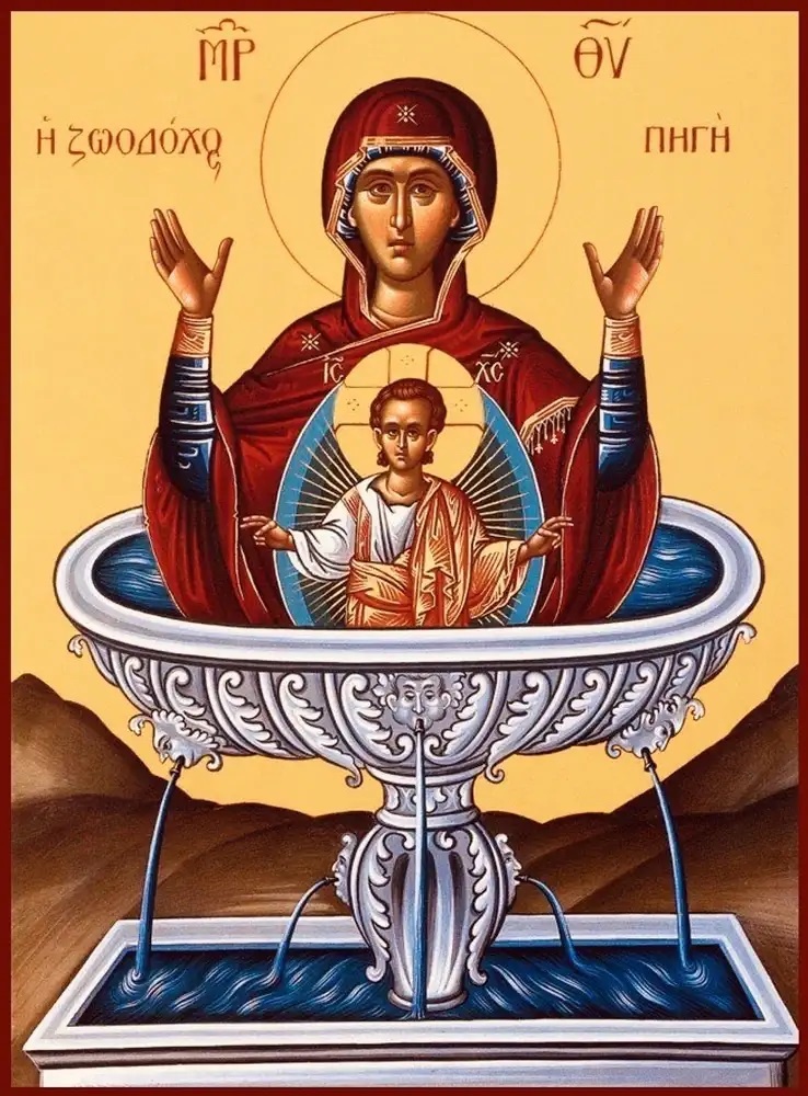 Τη γιορτή της Ζωοδόχου Πηγής τιμά σήμερα Παρασκευή, 21 Απριλίου, η Εκκλησία μας. Μεγάλη γιορτή σήμερα 21 Απριλίου 2023 καθώς η Εκκλησία τιμά την Ζωοδόχο Πηγή. Είναι κινητή γιορτή και εορτάζει την Παρασκευή της Διακαινησίμου εβδομάδος, δηλαδή 5 ημέρες μετά το Πάσχα.