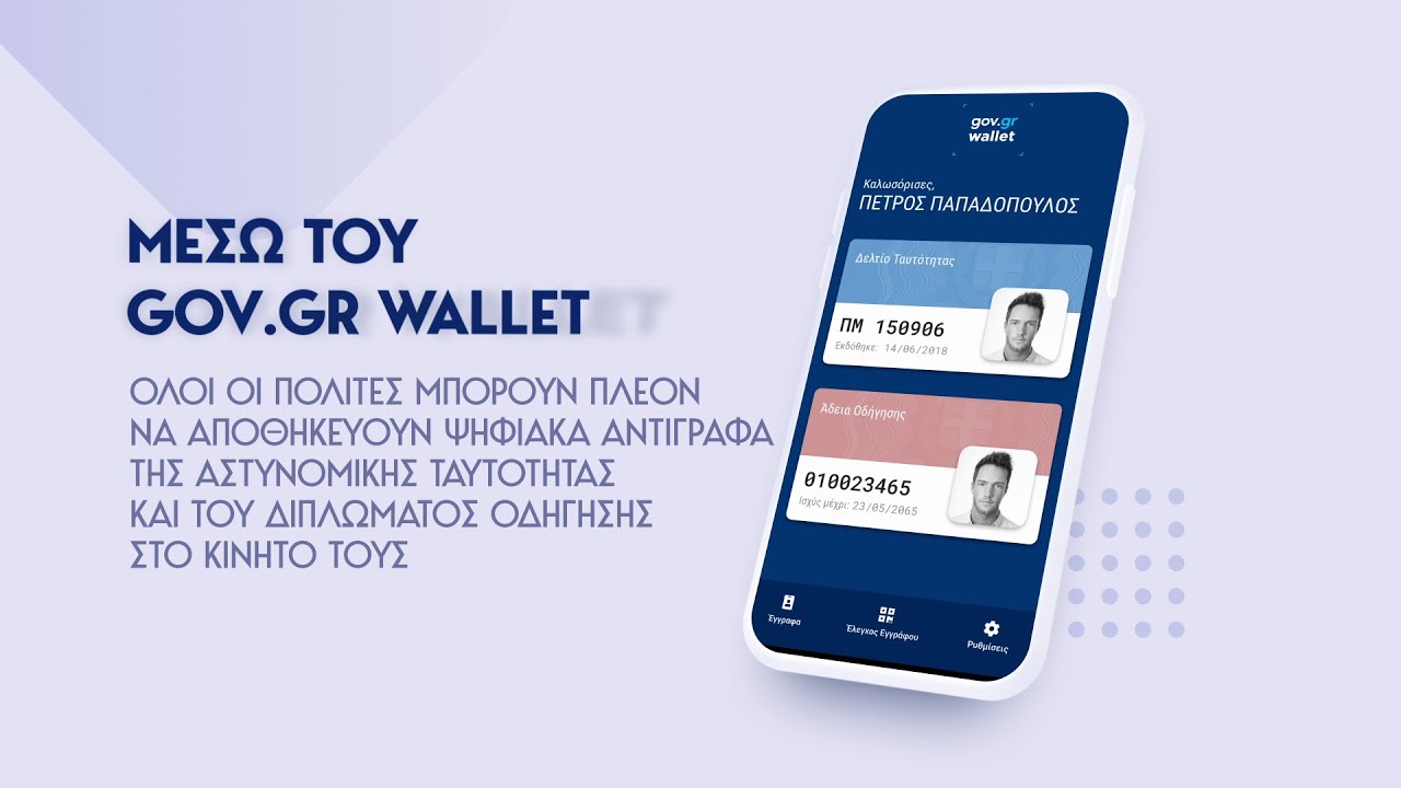 Υπενθυμίζεται ότι το Gov.gr Wallet δίνει τη δυνατότητα δημιουργίας, αποθήκευσης και επίδειξης των νέων ψηφιακών δελτίων ταυτότητας και ψηφιακών αδειών οδήγησης από τον πολίτη. Τα νέα ψηφιακά δελτία ταυτότητας και της άδειας οδήγησης είναι ψηφιακά έγγραφα που εκδίδονται μέσω του gov.gr και είναι πλήρως ισάξια με τα έγχαρτα έγγραφα, για κάθε νόμιμη χρήση εντός της Ελληνικής επικράτειας. Δεν αποτελούν διεθνή ταξιδιωτικά έγγραφα.