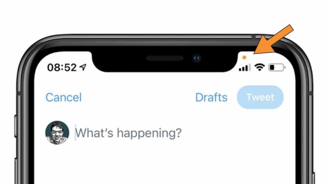 Η κίτρινη και πορτοκαλί κουκκίδα ειδοποιεί τον χρήστη όταν το μικρόφωνό του χρησιμοποιείται. Αν και μπορεί να μην ανάβει κατά τη χρήση της κάμερας, είναι πολύ πιθανό να αναβοσβήνει όταν μια εφαρμογή εγγραφής είναι έτοιμη για χρήση.