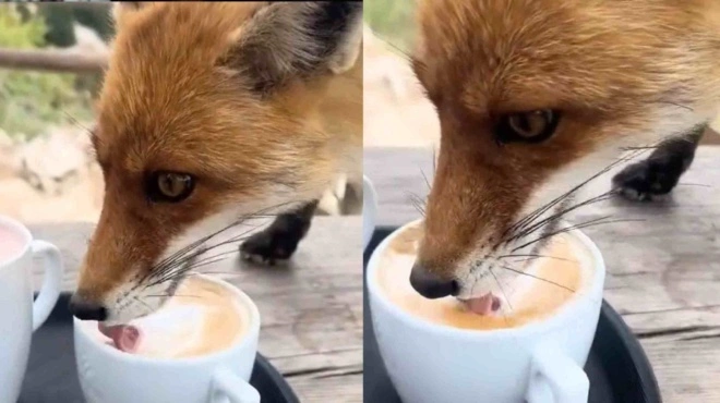 Βίντεο που δείχνει αλεπού «να απολαμβάνει» τον καφέ της έγινε viral.
