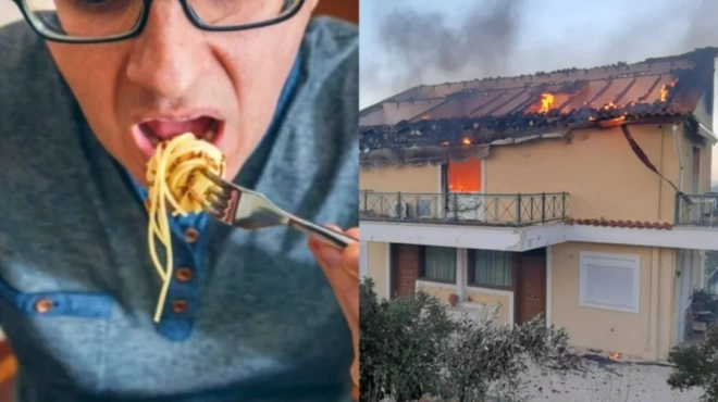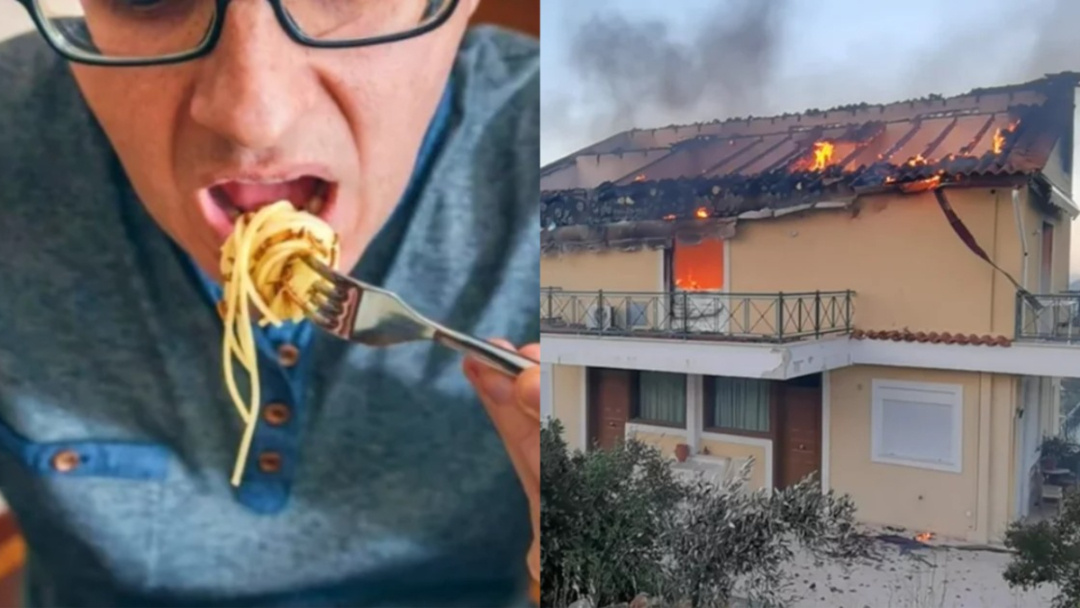 Έβαλε φωτιά στο σπίτι και έκατσε στην αυλή να φάει τη μακαρονάδα του