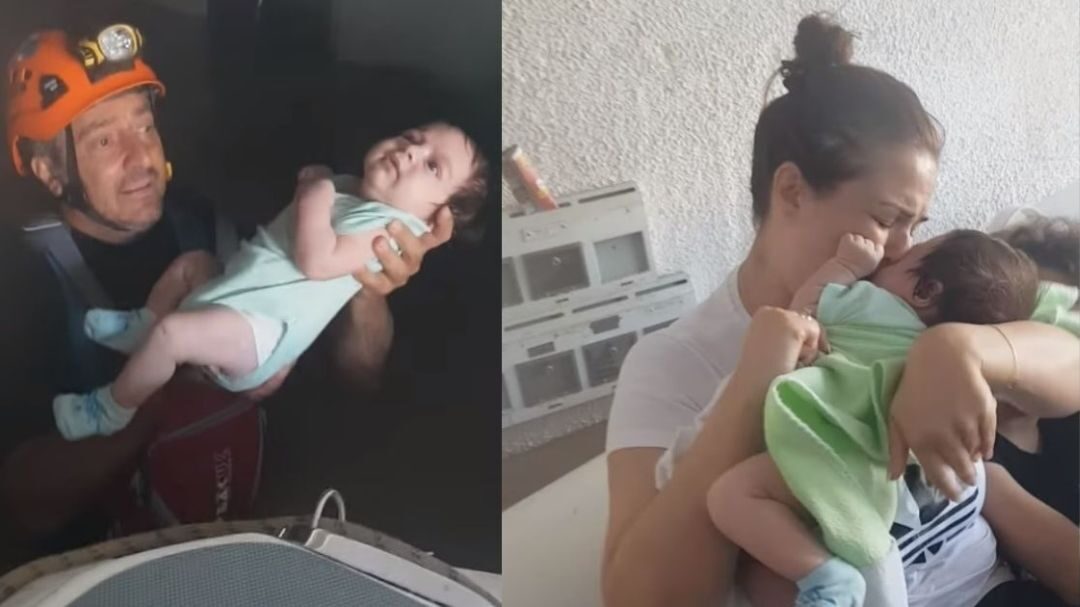 Σπαρακτικές εικόνες έρχονται από τη βυθισμένη Θεσσαλία: «Έλα εδώ αγάπη μου, ψυχάκι μου», του λέει η μητέρα του, που κλαίει με λυγμούς, όταν το παίρνει αγκαλιά μέσα στη βάρκα και το τυλίγει με το κουβερτάκι του.