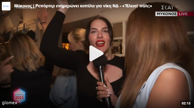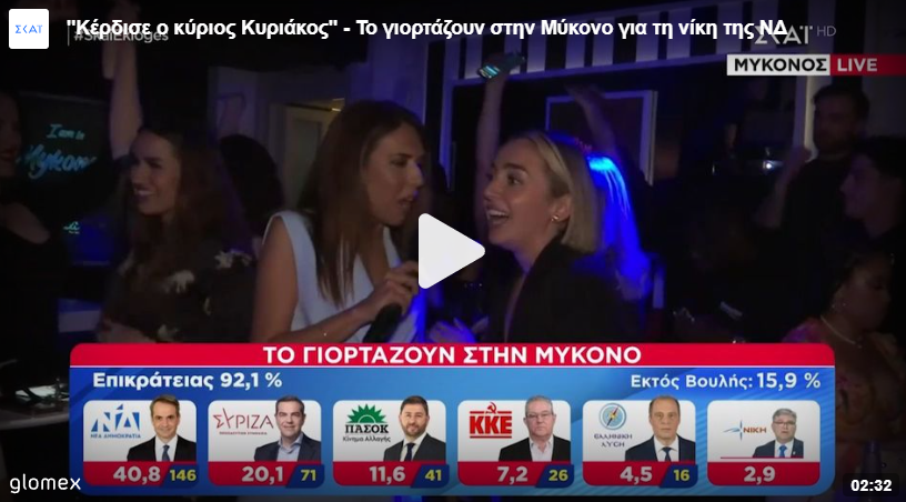 Η απάντηση μιας κοπέλας που βρισκόταν στο μαγαζί ήταν: «Βέβαια γνωρίζω, κέρδισε ο κύριος Κυριάκος. Είμαι ενημερωμένη για όλα. Αν είσαι στη Μύκονο τα μαθαίνεις όλα. Περνάμε τέλεια, η σεζόν έχει ξεκινήσει πάρα πολύ καλά»