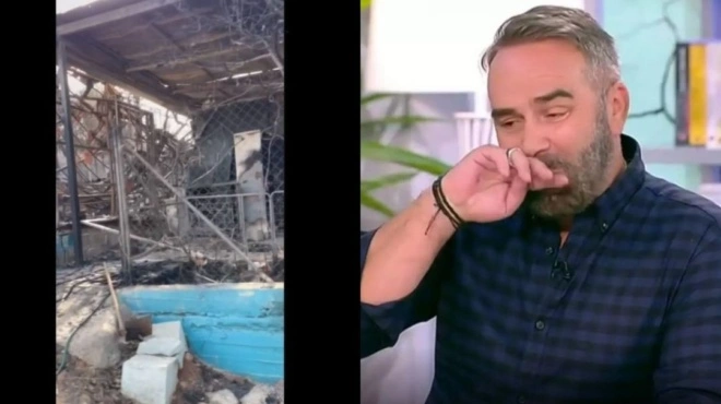 Μέσα από το προφίλ της παρουσιάστριας, ανέβασαν ένα κλιπ, στο οποίο ο Γρηγόρης Γκουντάρας δείχνει το σπίτι της οικογένειας στα Καλύβια που κάηκε ολοσχερώς.