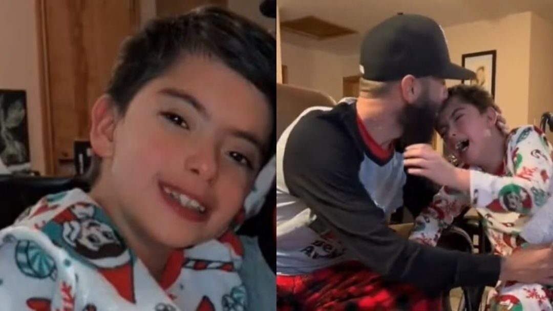 Ένα αγοράκι με αναπηρίες δίνει δώρο Χριστουγέννων σε έναν άντρα ένα γράμμα και του ζητάει να το διαβάσει φωναχτά.