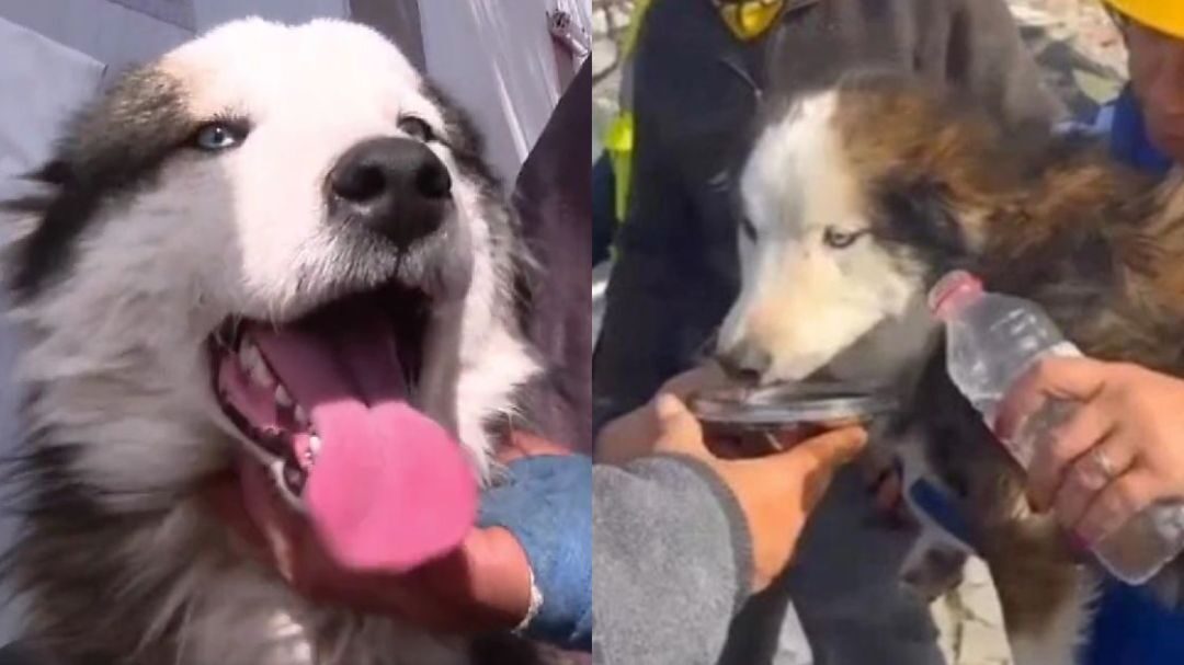 Ένας σκύλος ράτσας χάσκι διασώθηκε μετά από 22 ημέρες παγιδευμένος κάτω από ένα διώροφο κτίριο που κατέρρευσε στις 6 Φεβρουαρίου στην Τουρκία.