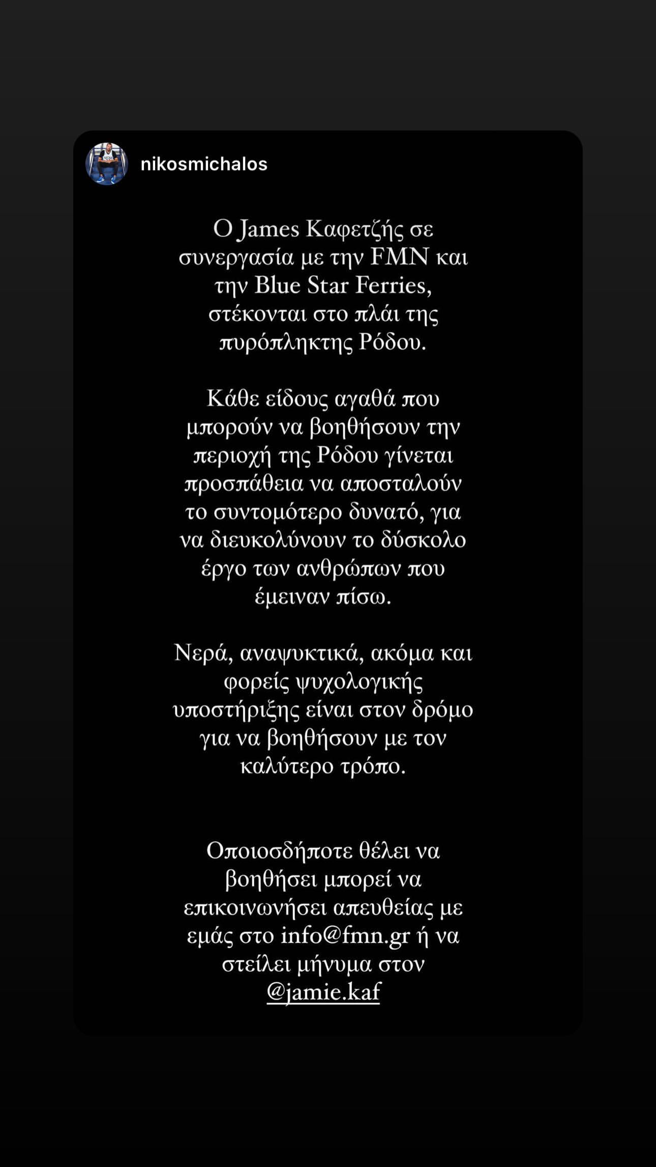 Οι αναρτήσεις του Τζέιμς Καφετζή για τις φωτιές στη Ρόδο