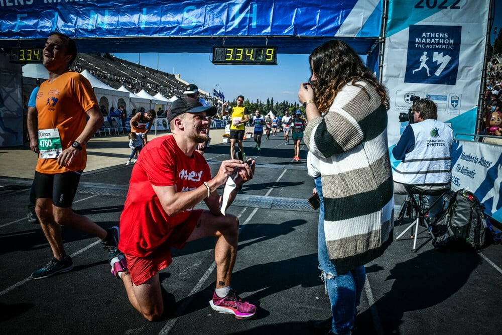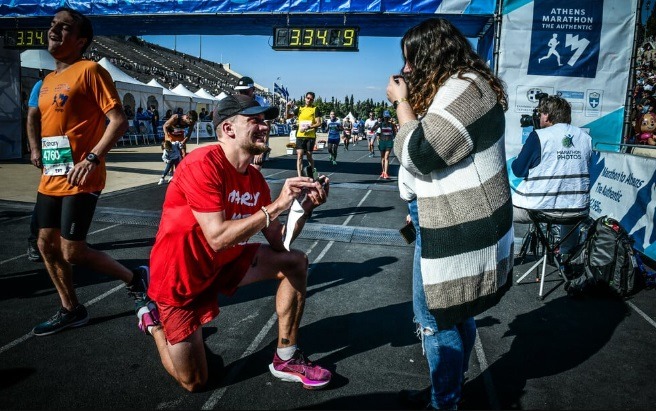 Ο σημερινός 39ος Αυθεντικός Μαραθώνιος της Αθήνας τα είχε όλα- και μια αναπάντεχη πρόταση γάμου.