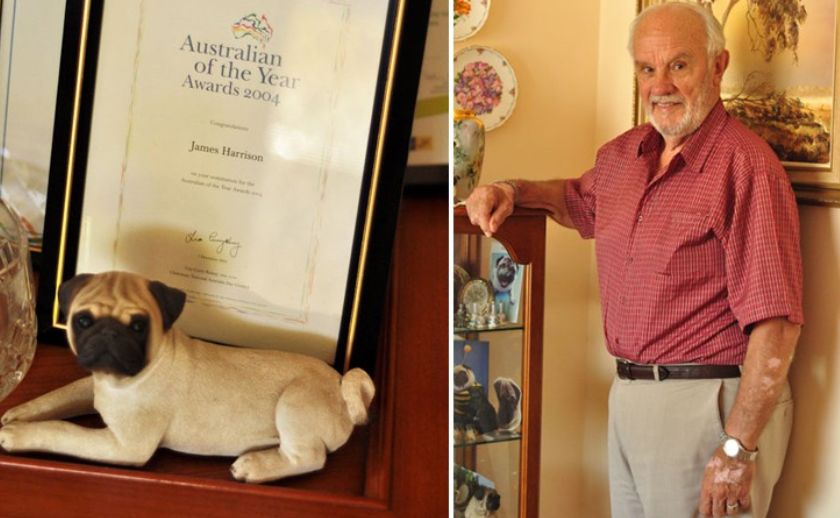«Μου ζήτησαν να γίνω ινδικό χοιρίδιο», λέει εκείνος για το ερευνητικό πρόγραμμα στο οποίο πήρε μέρος το 1967, «και δεν έχω σταματήσει έκτοτε να δίνω αίμα». Κάθε παρτίδα μάλιστα του ενέσιμου φαρμάκου που παραγόταν στην Αυστραλία περιείχε το θαυματουργό αίμα του Τζέιμς για δεκαετίες ολόκληρες!