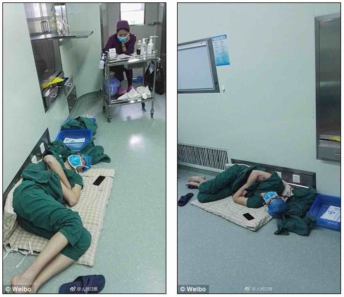 Οι γιατροί επιτελούν ένα δύσκολο έργο. Εργάζονται πολλές ώρες με σκοπό να προσφέρουν στον ασθενή τα μέγιστα. Ακολουθεί το παράδειγμα ενός γιατρού στην Κίνα που αποκοιμήθηκε στο πάτωμα μετά από χειρουργείο 28 ωρών.