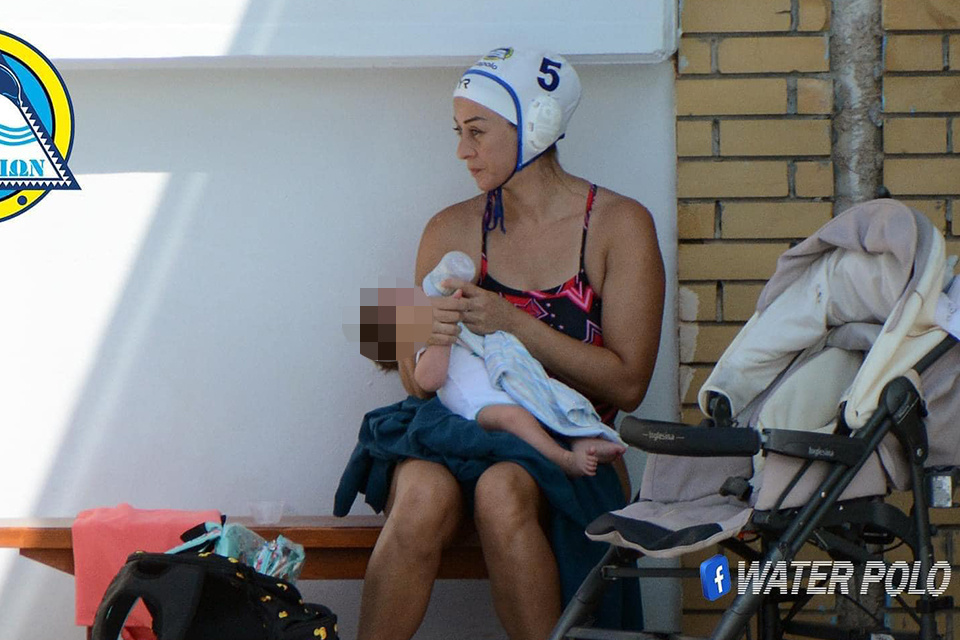 Viral έχουν γίνει οι φωτογραφίες αθλήτριας πόλο από τα Χανιά. Σε αυτές, απεικονίζεται να ταΐζει το λίγων μηνών μωρό της και στη συνέχεια βουτά στην πισίνα για την καθιερωμένη της προπόνηση.