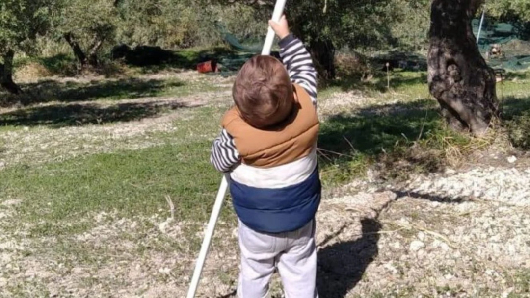 Μαζεύει ελιές και αρμέγει ο 2χρονος Στέλιος από την Κρήτη