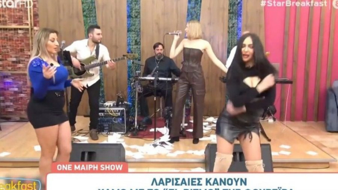 Το΄ριξαν έξω οι Λαρισαίες σε τοπικό κανάλι στη Λάρισα όπου απόσπασμα τις δείχνει να τα δίνουν όλα στον χορό και να λικνίζονται στους ρυθμούς του τραγουδιού της Ελένης Φουρέιρα «el ritmo».