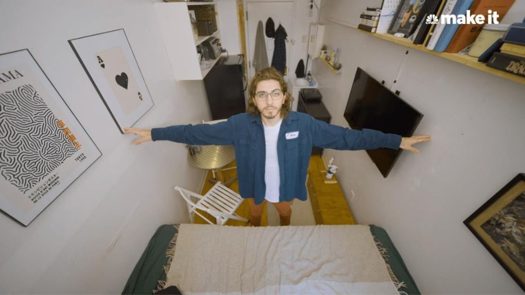«Το βασικό όφελος της ζωής σε τόσο μικρό χώρο είναι ότι σε κάνει να εκτιμάς τα πράγματά σου και να είσαι μινιμαλιστής. Δεν μπορείς να βγεις και να αγοράσεις τυχαία πράγματα, επειδή δεν έχεις χώρο να τα βάλεις», τονίζει ο 23χρονος που σχεδιάζει να φύγει από το διαμέρισμα την επόμενη χρονιά.