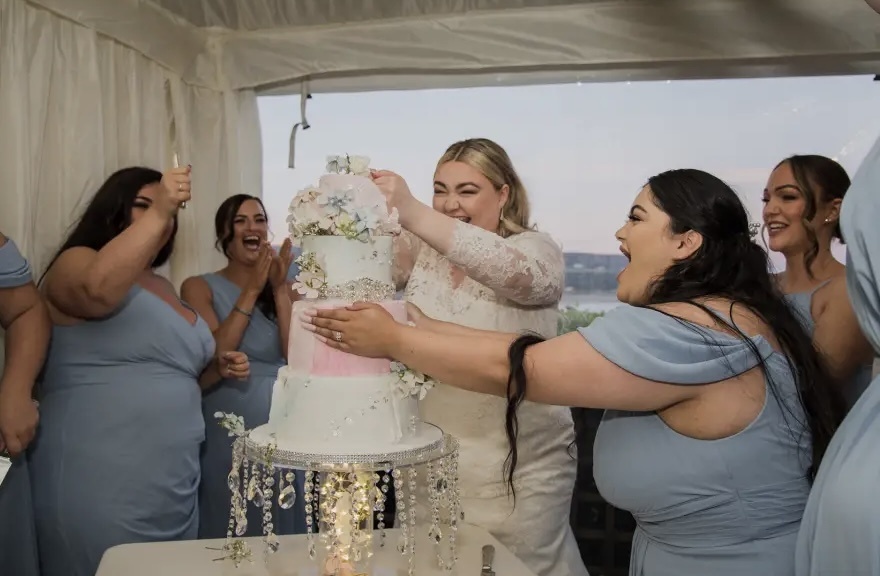 Χόρεψε τον πρώτο χορό με τους κουμπάρους, τα αδέλφια της και τον πατέρα της Brian, 71 ετών ενώ στη δεξίωση, έκοψε με περισσή χαρά τη γαμήλια τούρτα της. Περπάτησε, επίσης, μέσα από ένα μονοπάτι από βεγγαλικά με τους φίλους της και διασκέδασε μέχρι τελικής πτώσης με τους καλεσμένους της πριν περάσει τη νύχτα στη νυφική σουίτα με την κουμπάρα της.