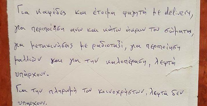 Δεν είναι λίγες οι φορές που έχουμε δει σημειώματα στους κοινόχρηστους χώρους της πολυκατοικίας με την είσοδο και τους ανελκυστήρες να είναι από τα συχνά μέρα που συναντάμε χιουμοριστικά σημειώματα συνήθως από τους διαχειριστές. ¨Όπως λοιπόν και το παρακάτω σημείωμα που πετύχαμε στο twitter όπου ο εν λόγω διαχειριστής με αρκετό χιούμορ προσπαθεί διακριτικά να πείσει τους ενοίκους να τακτοποιήσουν τις υποχρεώσεις τους. Το σημείωμα έγινε άμεσα viral καθώς ο διαχειριστής δείχνει να γνωρίζει εντυπωσιακές λεπτομέρειες για τα έξοδα και τις σπατάλες των ενοίκων και να συμπεραίνει πως λεφτά υπάρχουν!