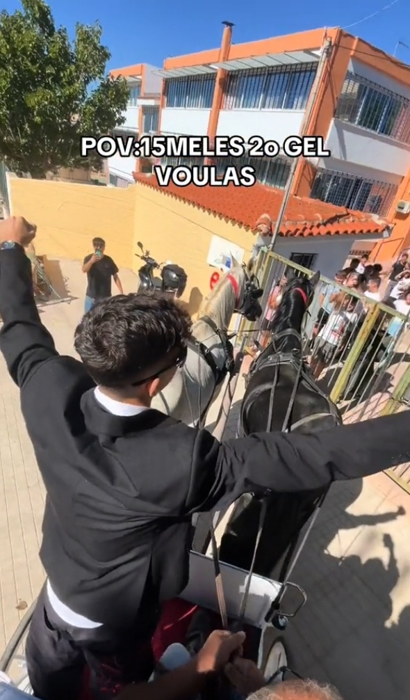 Δεν είναι γνωστό πόσο κόστισε η ενοικίαση της άμαξας αλλά αυτός ο μαθητής από την Βούλα έγινε viral στο TikTok.