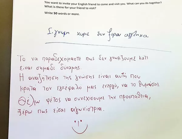 Και τότε ο δάσκαλος των αγγλικών δεν έβαλε βαθμό. Αλλά έγραψε αυτό.