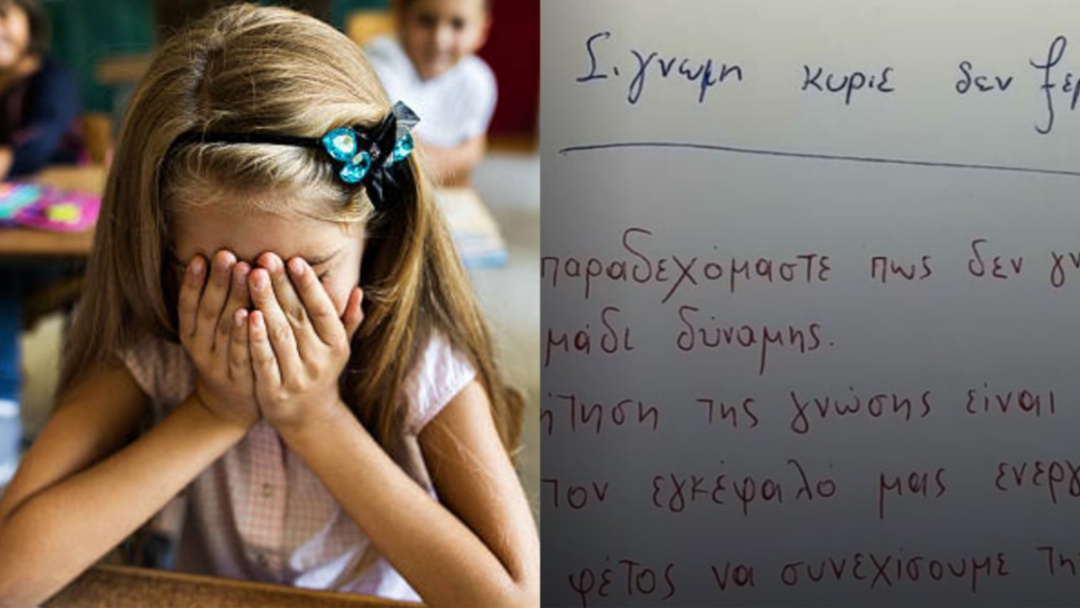 Μια συγκλονιστική ιστορία ενός παιδιού που αδυνατούσε να μάθει αγγλικά και ζήτησε συγγνώμη από τον δάσκαλο της. Παίρνοντας μια απάντηση που συγκινεί αφού ο δάσκαλος της έγραψε ακριβώς αυτό που είχει στην ψυχή του. “Πολλοί άνθρωποι θα μιλήσουν αγγλικά ή άλλες γλώσσες αλλά λίγοι θα γίνουν άνθρωποι με Α κεφαλαίο”, είναι μερικά από τα λόγια του.