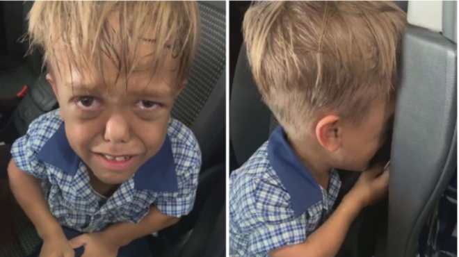 Όταν έφτασαν στο αμάξι, η μαμά αποφάσισε να βιντεοσκοπήσει το παιδί να κλαίει, ώστε να παροτρύνει και άλλους γονείς και εκπαιδευτικούς να δράσουν ενάντια στον σκληρό εκφοβισμό που δεχόταν.