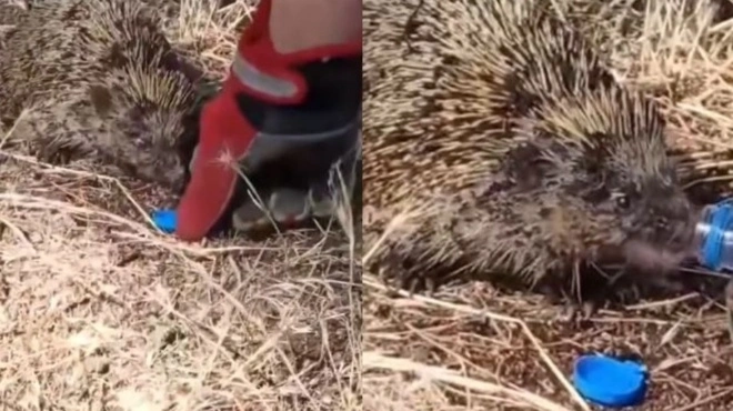 Τον γύρο του διαδικτύου κάνει τις τελευταίες ώρες βίντεο που δείχνει έναν πυροσβέστη να δίνει νερό με το μπουκαλάκι σε έναν σκαντζόχοιρο, που γλίτωσε από τη φωτιά στο Κιλκίς.