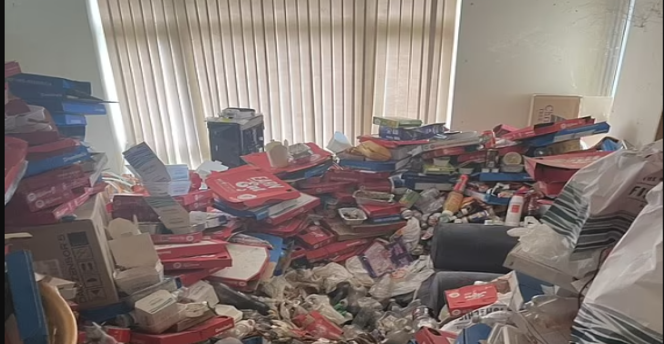 Ένας άνδρας που αποδείχθηκε ότι ήταν μεγάλος λάτρης της πίτσας, ζούσε για αρκετά μεγάλο διάστημα σε ένα πραγματικό αχούρι. Μέσα στο σπίτι υπήρχαν αμέτρητα κουτιά πίτσας, αξίας πάνω από 30.000 λίρες, καθώς κι άλλα απορρίμματα που είχαν μετατρέψει το διαμέρισμα σε σκουπιδότοπο.