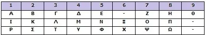 Οι παρακάτω πίνακες δείχνουν την αριθμητική αξία κάθε γράμματος του Ελληνικού και Λατινικού αλφαβήτου.
