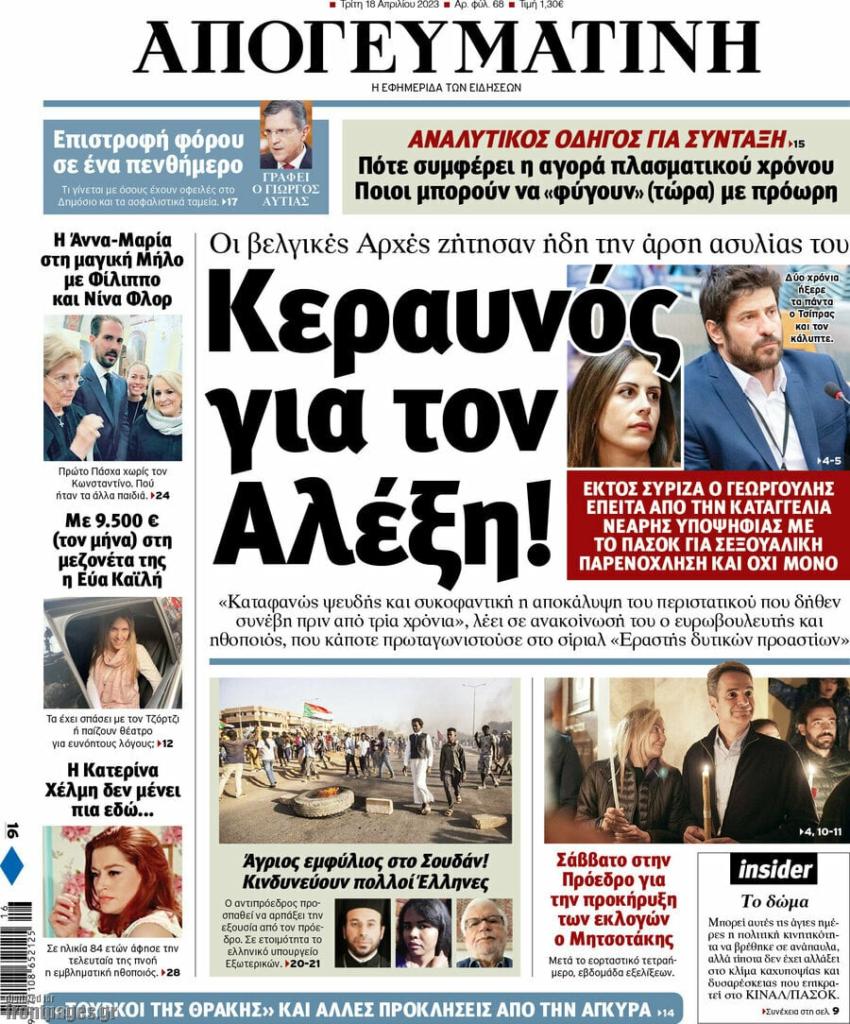 Τα σημερινά πρωτοσέλιδα και η αναφορά στο όνομα της Ελένης Χρονοπούλου