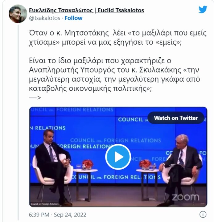— Ευκλείδης Τσακαλώτος | Euclid Tsakalotos (@tsakalotos) September 24, 2022
