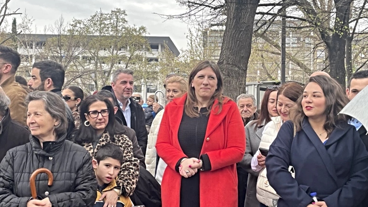 «Η θέση μου βρίσκεται με τον κόσμο», επισήμανε η πρόεδρος του κόμματος, όταν ρωτήθηκε γιατί δε βρίσκεται στην εξέδρα των επισήμων αλλά ανάμεσα στο πλήθος.