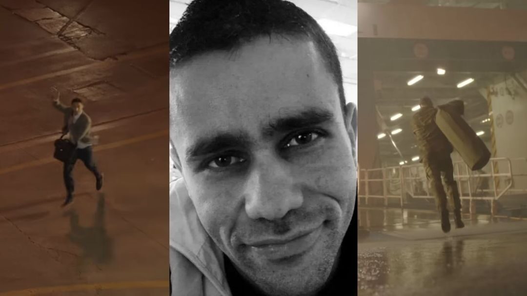 Σε αυτά βλέπουμε έναν αργοπορημένο επιβάτη με κοστούμι και χαρτοφύλακα να τρέχει να προλάβει το καράβι που ετοιμάζεται να φύγει. Αφού μπαίνει μέσα, ακόμα ένας αργοπορημένος, αυτήν τη φορά, φαντάρος, με τη στολή του και τον χαρακτηριστικό σάκο «λουκάνικο», τρέχει να προλάβει.