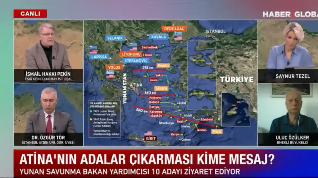 Μιλώντας στο φιλοκυβερνητικό δίκτυο Haber Global και στην εκπομπή της δημοσιογράφου Σαϊνούρ Τεζέλ, ο αναλυτής και πρώην στρατιωτικός Ισμαήλ Χακκί Πεκίν, τόνισε πως «η Ελλάδα εξοπλίζεται σε Αιγαίο και Θράκη προκειμένου να αποτρέψει στρατιωτική επιχείρηση της Τουρκίας»