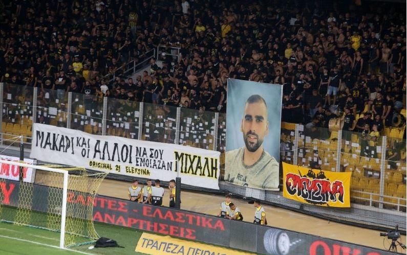 Μάλιστα, μετά την ενός λεπτού σιγή στη μνήμη του 29χρονου Μιχάλη, η «OPAP Arena» σείστηκε από το σύνθημα «Μιχάλη ζεις, για πάντα ΑΕΚτζής».