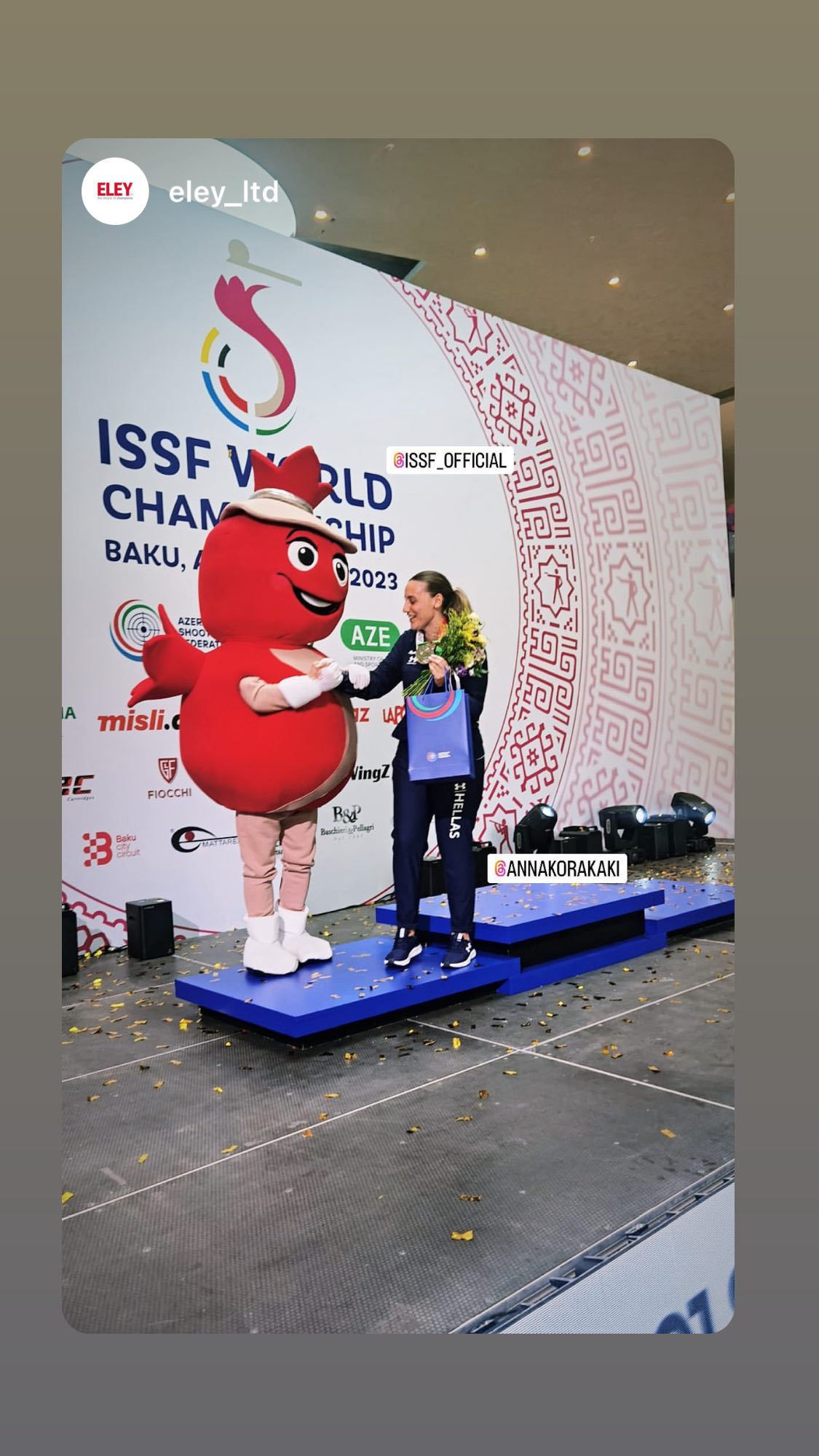 Η απονομή του αργυρού μεταλλίου στην καταπληκτική Άννα Κορακάκη για τη 2η θέση στο Παγκόσμιο Πρωτάθλημα σκοποβολής