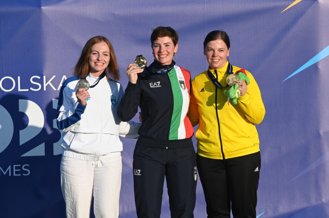 Η απονομή του μεταλλίου στην Εμμανουέλα Κατζουράκη για τη δεύτερη θέση στο σκιτ των Ευρωπαϊκών Αγώνων