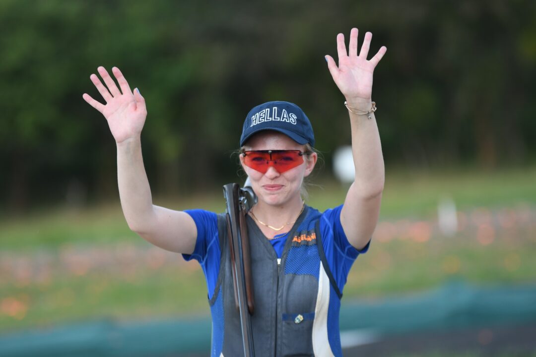 Η Εμμανουέλα Κατζουράκη ποζάρει χαρούμενη με το ασημένιο μετάλλιο στο σκιτ της σκοποβολής