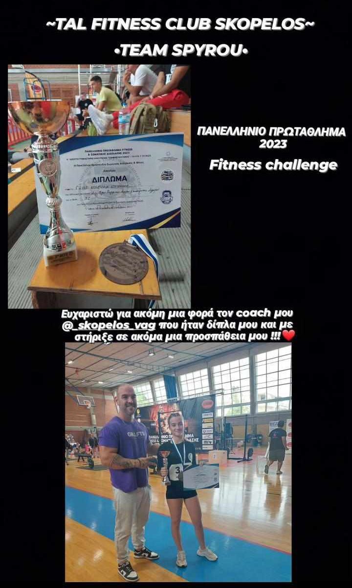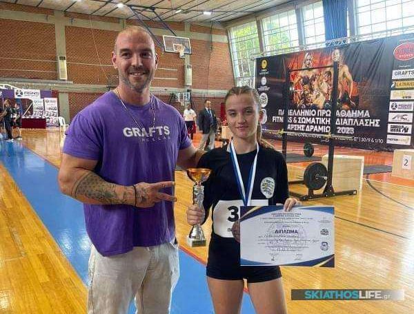 Στο Πανελλήνιο πρωτάθλημα σωματικής διάπλασης «Fitness Challenge 2023», που πραγματοποιήθηκε στην Αθήνα, στο κλειστό γυμναστήριο Ηλιούπολης, η αθλήτρια, Αποστολία Γκίκα, με προπονητή τον Βαγγέλη Σπύρου, από το γυμναστήριο «Fitness Club Skopelos», κατέκτησε την 3η θέση και το χάλκινο κύπελλο, καθώς κι ένα ακόμη μετάλλιο και δίπλωμα.