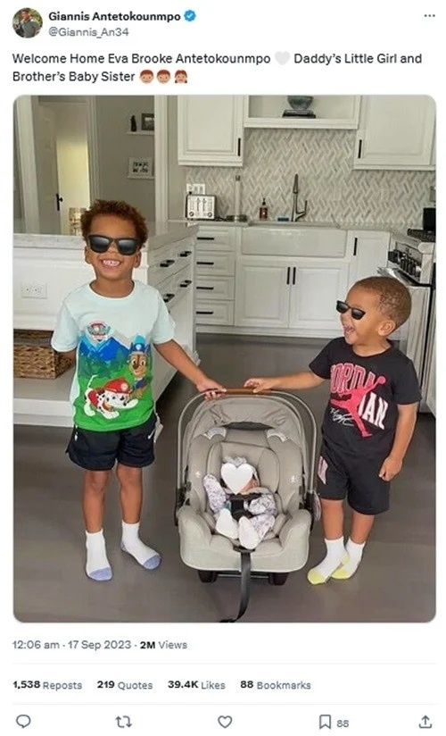 Η ανάρτηση του Γιάννη Αντετοκούμπο τον Σεπτέμβριο για την υποδοχή του τελευταίου μέλους της οικογένειάς του με την Μαράια, της Εύα Μπρουκ Αντετοκούμπο: