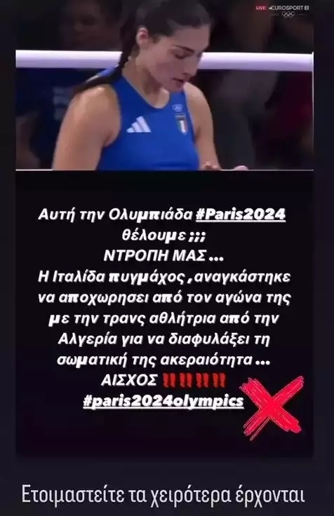 Λίγες ώρες αργότερα, ο Γιώργος Πιλίδης επανήλθε με νέο post στο οποίο έγραψε: «Αυτή την Ολυμπιάδα θέλουμε; Ντροπή μας! Η Ιταλίδα πυγμάχος αναγκάστηκε να αποχωρήσει από τον αγώνα της με την τρανς αθλήτρια από την Αλγερία για να διαφυλάξει τη σωματική της ακεραιότητα… ΑΙΣΧΟΣ! Ετοιμαστείτε, τα χειρότερα έρχονται», έγραψε χαρακτηριστικά ο Γιώργος Πιλίδης.