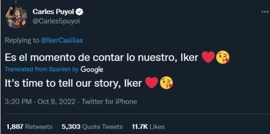 Ένας από τους πρώτους που σχολίασαν στην ανάρτηση του ήταν ο συμπαίκτης του στην εθνική Ισπανίας, Κάρλες Πουγιόλ, ο οποίος έγραψε χιουμοριστικά πως ήρθε η ώρα να αποκαλύψει την ιστορία τους.