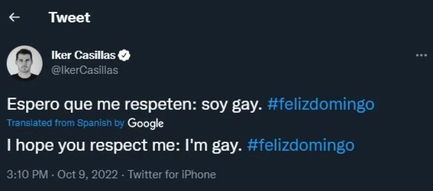 Μία ανακοίνωση για την σεξουαλικότητά του μέσω του προσωπικού του λογαριασμού στο Twitter έκανε λίγο πριν ο δημοφιλής τερματοφύλακας Ίκερ Κασίγιας.